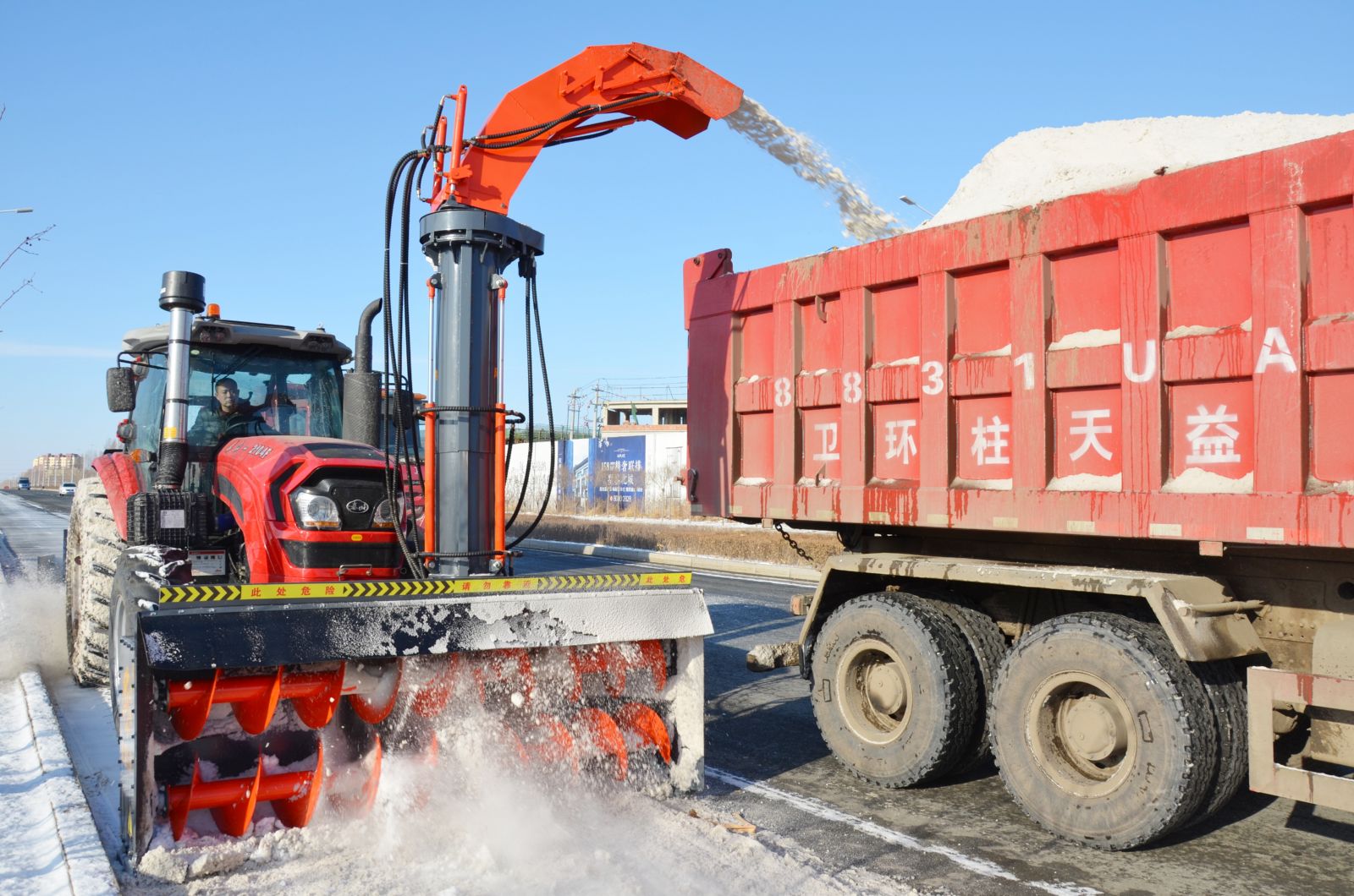 由离心式风扇强力吸入,通过抛雪口抛出到空旷地面或沟渠,也可直接将积雪装车;有效的达到除雪效果,达到快速