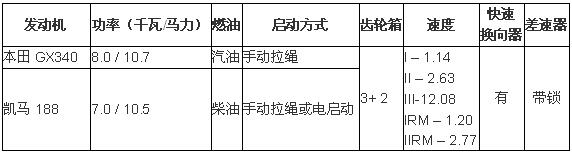 意大利730 系列采用:手拉启动的10.7马力日本本田GX340汽油发动机,也可改装更换成:电启动的10.5马力的凯马188柴油发动机。